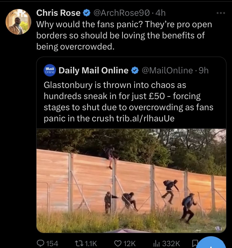 I’m no super fan of Coldplay, but bringing together over 100,000 people in a field is something every politician can only dream of. Even the smallest act of the weekend bought joy to more people than Greedy Rishi has in the last few years.