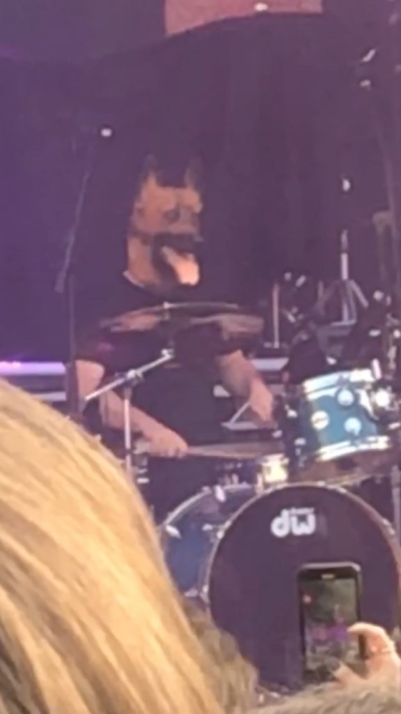As the crowd began to fill up, the second band took to stage. And these guys and girls from South London are ones to look out for. They’ll be playing all the big stages at festivals in coming years, mark my words. Fat Dog came onto stage, with the drummer sticking on his German-sheppard (I think) mask which can be seen below.
